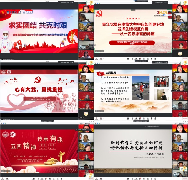 5月4日晚,william威廉亚洲官方奉贤校区本科生党支部、徐汇校区本科生党支部、同济大学材料科学与工程学院本科生党支部齐聚云端,联合开展了“赓续五四精神,谱写奋斗青春”主题党日活动。公司党委副书记曹娜、同济大学材料科学与工程公司党委副书记王凌凌以及两校三个支部全体党员、发展对象与积极分子在线参加此次活动。
